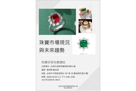 10月15日由台南市金銀珠寶商業同業公會珠寶產業舉辦的台南珠寶及黃金學術研討會順利圓滿成功.