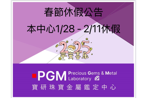 本中心春節前往美國礦物展,將於1/28-2/11休假。並從2/13開始正常營業喔!